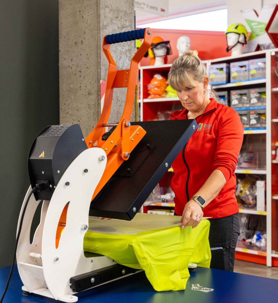 Becky Tööohutuskeskus pakub firma logo, sümboolika või tekstide trükkimise teenust. Tööriiete personaliseerimiseks kasutame kiiret ja lihtsat kuumpressmeetodit ehk logo või sõnum trükitakse kilele, mis kuumutatakse pressi abil kangale.