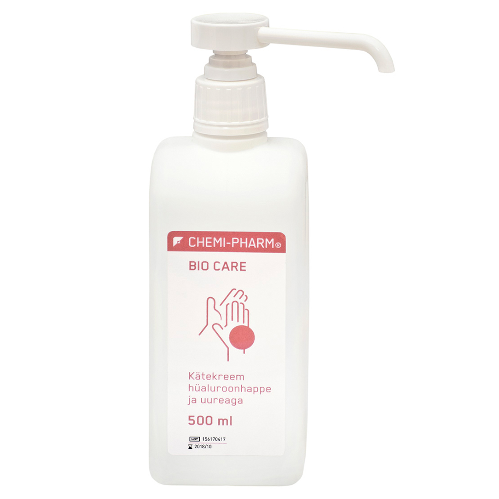 CHEMI PHARM BIO CARE Hand Cream 500 ml. BIO CARE is a moisturizing and nourishing hand and skin cream with hyaluronic acid and urea. Urea and hyaluronic acid provide long term moistening for dry hands and skin and leave the skin feeling soft, smooth and silky. It was specifically developed for sensitive skin.