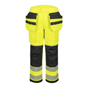 Зимние штаны сварщика повышенной видимости PORTWEST FR427 Modaflame. Зимние штаны с огнестойкими свойствами (flame resistant) защищают от дождя, химических веществ и электрических дуг, что делает их идеальными для рабочих условий, где могут возникать различные опасности. Двухцветные штаны повышенной видимости стильные и практичные. Рабочие штаны имеют съёмные навесные карманы и двухуровневые карманы для наколенников. Длина штанин может быть увеличена.